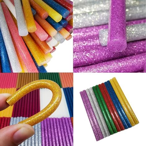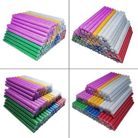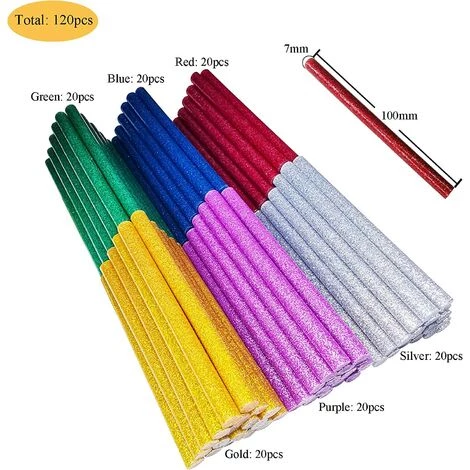 Un total de 120 Pices Btons de Colle Chaude. Contient 6 couleurs de paillettes: or, argent, rouge, bleu, vert, violet, chaque couleur 20 pices. Ces couleurs sont trs populaires, elles sont fantastiques et lumineuses. .