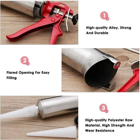 - Facile à utiliser – Notre pistolet à clous a un rapport de poussée élevé, adapté aux matériaux de viscosité moyenne à élevée et aux composés mélangés. Il a une poignée en caoutchouc ergonomique pour vous rendre plus confortable. Le kit comprend 2 buses en plastique pour un remplacement rapide.