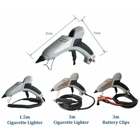 4. La forme du pistolet à colle est traitée avec du plastique isolant haute température. Équipé d’un indicateur d’alimentation et d’un cordon d’alimentation de 1,5 m / 3 m avec une prise allume-cigare / clip de batterie. Il présente les caractéristiques d’une température constante automatique, d’une alimentation électrique sûre et d’une longue durée de vie.
