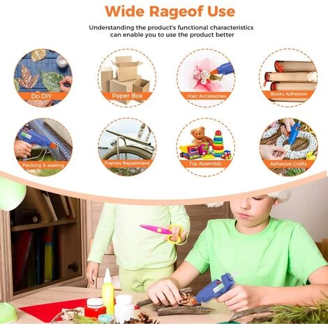 Les pistolets adhésifs peuvent être utilisés pour modeler des jouets, des fleurs artistiques, des décorations, des produits en métal / bois, du carton, de l’électronique, etc.