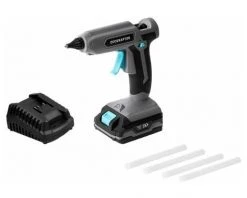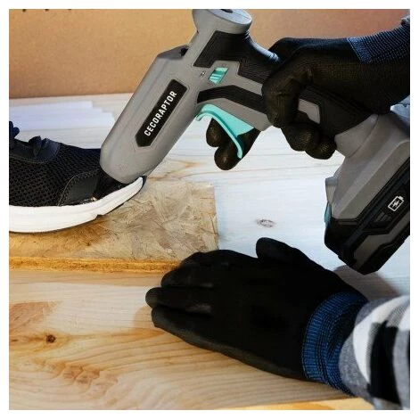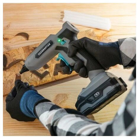 - Pistola di incollaggio con silicone caldo senza cavi, con batteria ricaricabile agli ioni di litio da 20 V e 2000 mAh, intercambiabile con tutti gli attrezzi della serie CecoRaptor Perfect da 20 V.
