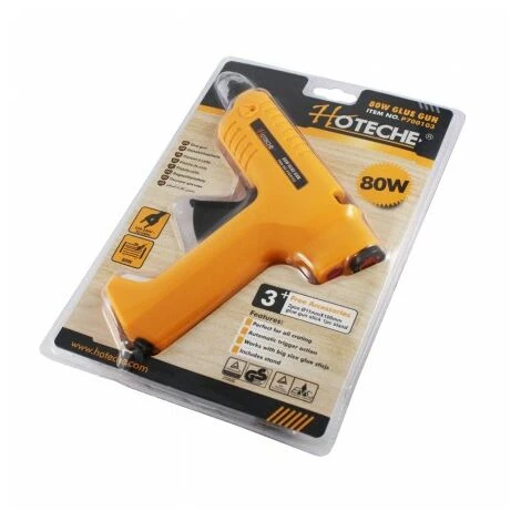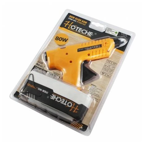 Pistola hot melt 80 W colla a caldo.- Perfetto per tutti i tipi di lavoro manuale.- Funzione di innesco automatico.- Include due barre di colla e supporto.imballato in blister