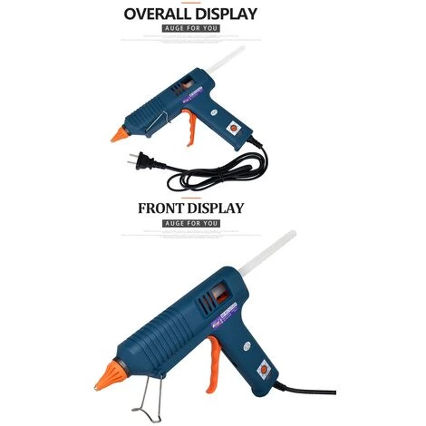 La forme du pistolet à colle est traitée avec du plastique isolant haute température. Équipé d’un voyant d’alimentation et d’un cordon d’alimentation standard international de 1, 5 m de long.