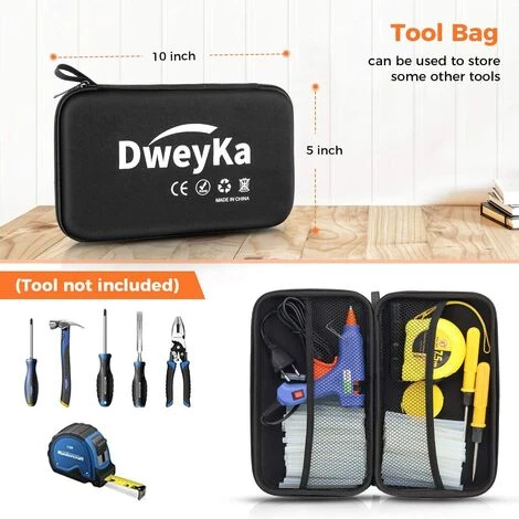 Facile à Stocker et à Transporter:Un sac à outil est fourni, pour bien stocker les pièces, le pistolet à colle chaud et les bâtons de colle, c’est très pratique aussi pour conserver des autres petits outils de bricolages, et pour les transporter à l’extérieur.