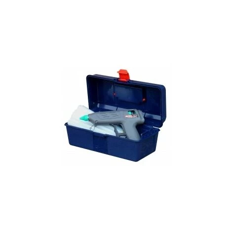 Pistolet avec avance automatique à la gâchette. Double corps de chauffe, débit très régulier, buse anti-goutte. Utilise tous types de colle en bâton de Ø 12 mm. Température max : 193°C. Puissance auto régulée jusqu’à 80 W. Alimentation : 230 V – 50 Hz. Sous la référence 0110011 le pistolet est livré avec de la colle dans une boîte à outils 300 mm en polypropylène incassable.
