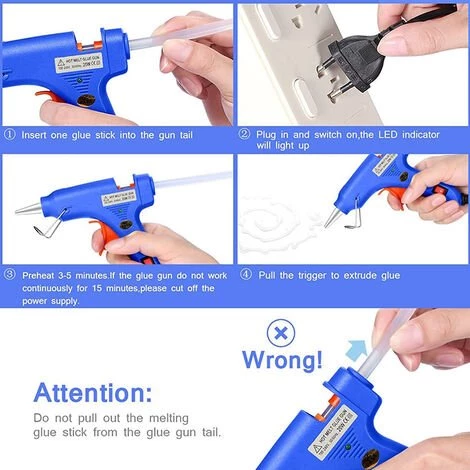 - 4. Et la fonction d’alimentation du pistolet à colle aide à contrôler le flux de colle et garantit des performances sans gouttes, ce qui vous permet d’économiser beaucoup de bâtons de colle.