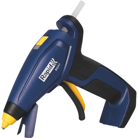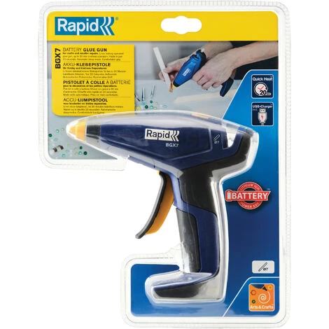Pistolet à colle sans fil, ideal pour les loisirs creatifs et les petites reparations. Il fonctionne efficacement pendant 30 minutes sans recharger et chauffe en seulement 20 secondes. Alimente par une batterie 3,6 V, rechargee via son port micro-USB pratique.