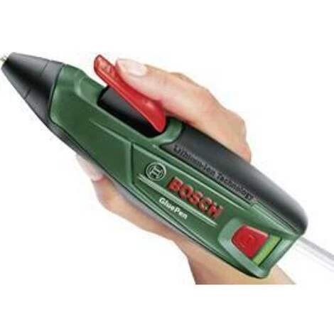 Ne se bouche pas et est toujours prêt à l’emploi ! Le pistolet à colle innovant GluePen de Bosch fonctionne avec une batterie lithium-ion. Il vous permet de coller confortablement et précisément différents matériaux à la maison. Que ce soit pour réparer, décorer, bricoler ou pour le modélisme, le GluePen colle presque tous les matériaux (carton, métal, textile, verre, liège, carrelage, cuir, bois, pierre, plastique) et est prêt à coller rapidement grâce à un temps de préchauffage de 15 secondes seulement. L’autre avantage du GluePen par rapport aux outils de collage multifonctions conventionnels est sa technologie de thermofusion qui empêche la colle de sécher et qui évite que l’embout ne soit obstrué. Des bâtonnets de colle conventionnels d’un diamètre de 7 mm peuvent être utilisés avec le GluePen. Grâce à sa conception ergonomique en forme de stylo, le GluePen tient bien dans la main et permet de travailler en profitant d’un maximum de confort. Il permet un travail plus rapide, plus précis et plus propre qu’avec des pistolets à colle conventionnels. En effet, le mécanisme de rétraction innovant garantit un travail propre et sans goutte. L’élément chauffant unique en son genre réchauffe uniquement l’embout et le compartiment qui le contient, faisant ainsi du GluePen un outil sûr, sans risque de brûlure. (Ne convient pas pour PE, PP, PTFE, Styropor®, PVC souple)
